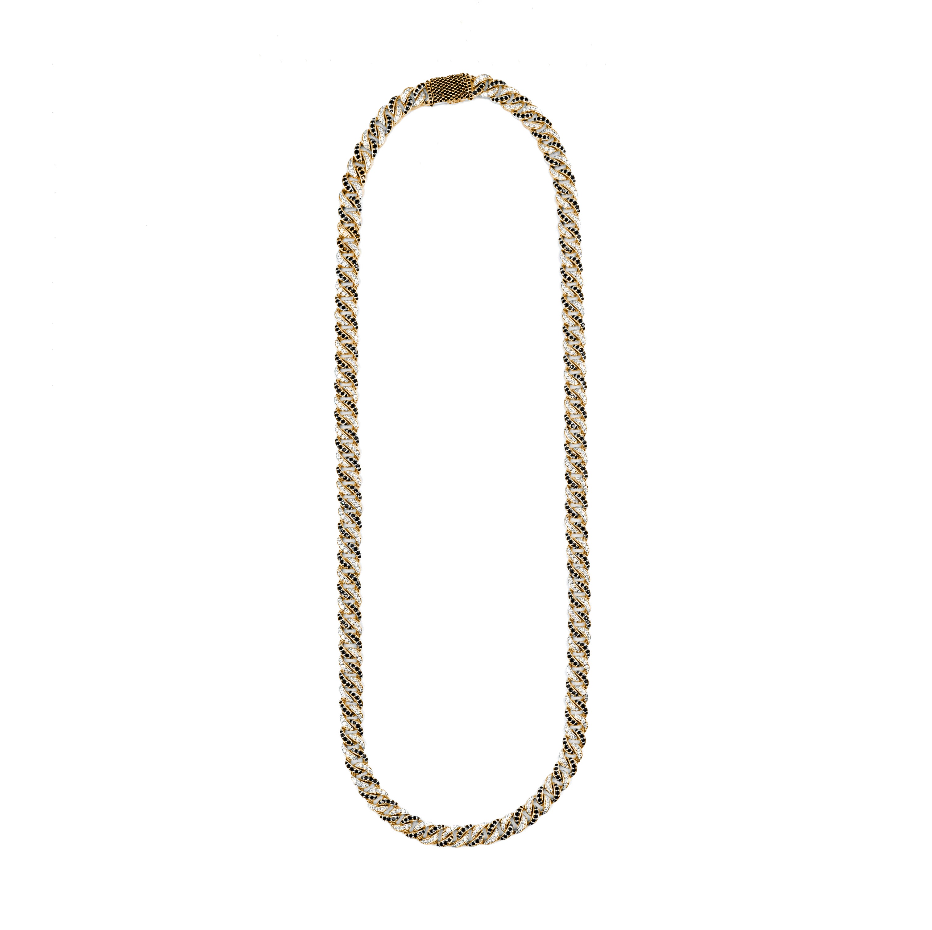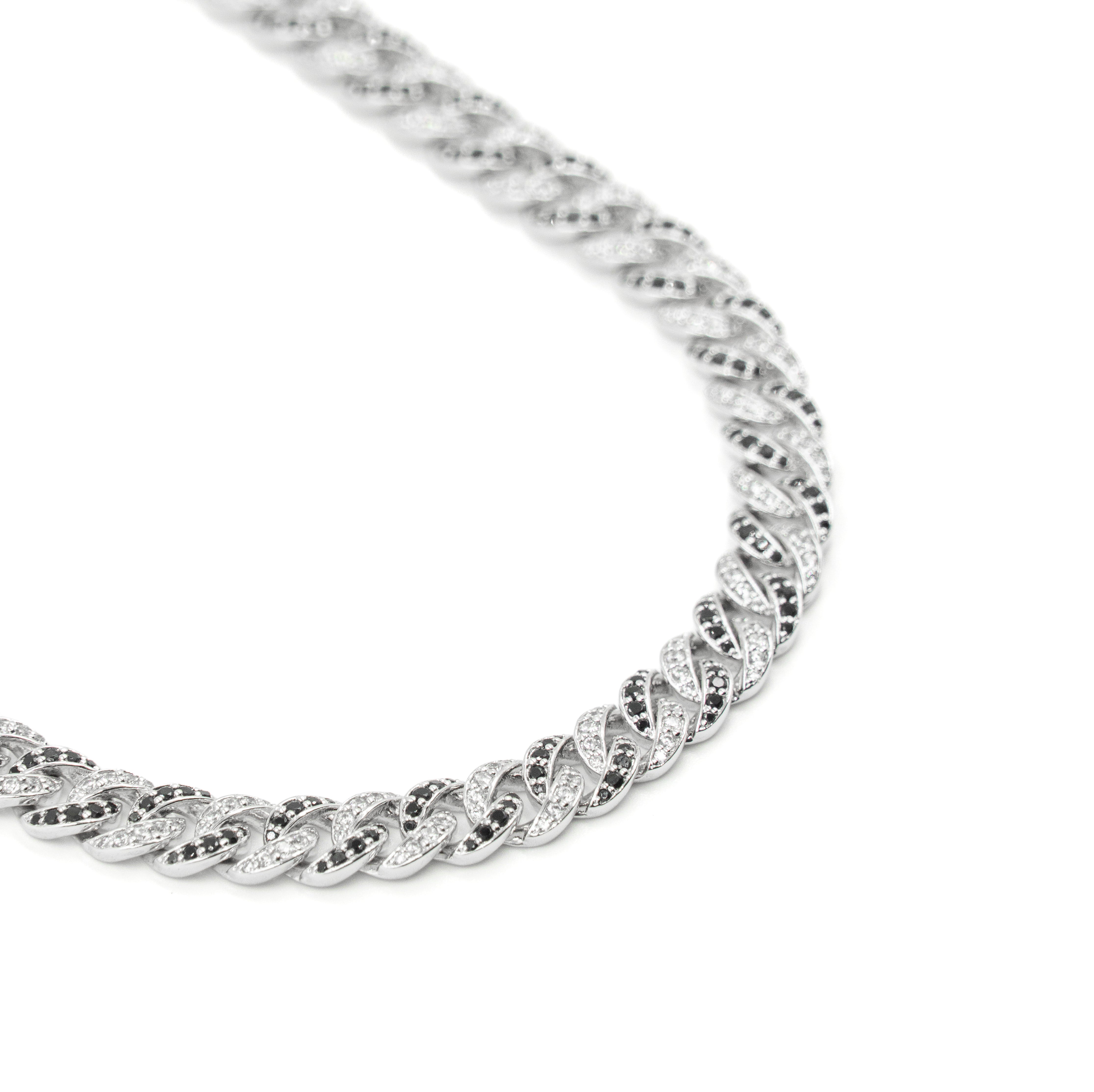 The 6mm Black & White Cuban Chain is for anyone who loves a clean contrast flex. With alternating black and white stones, this Cuban link hits different. It’s sleek, modern, and perfect for both minimal and iced-out looks.