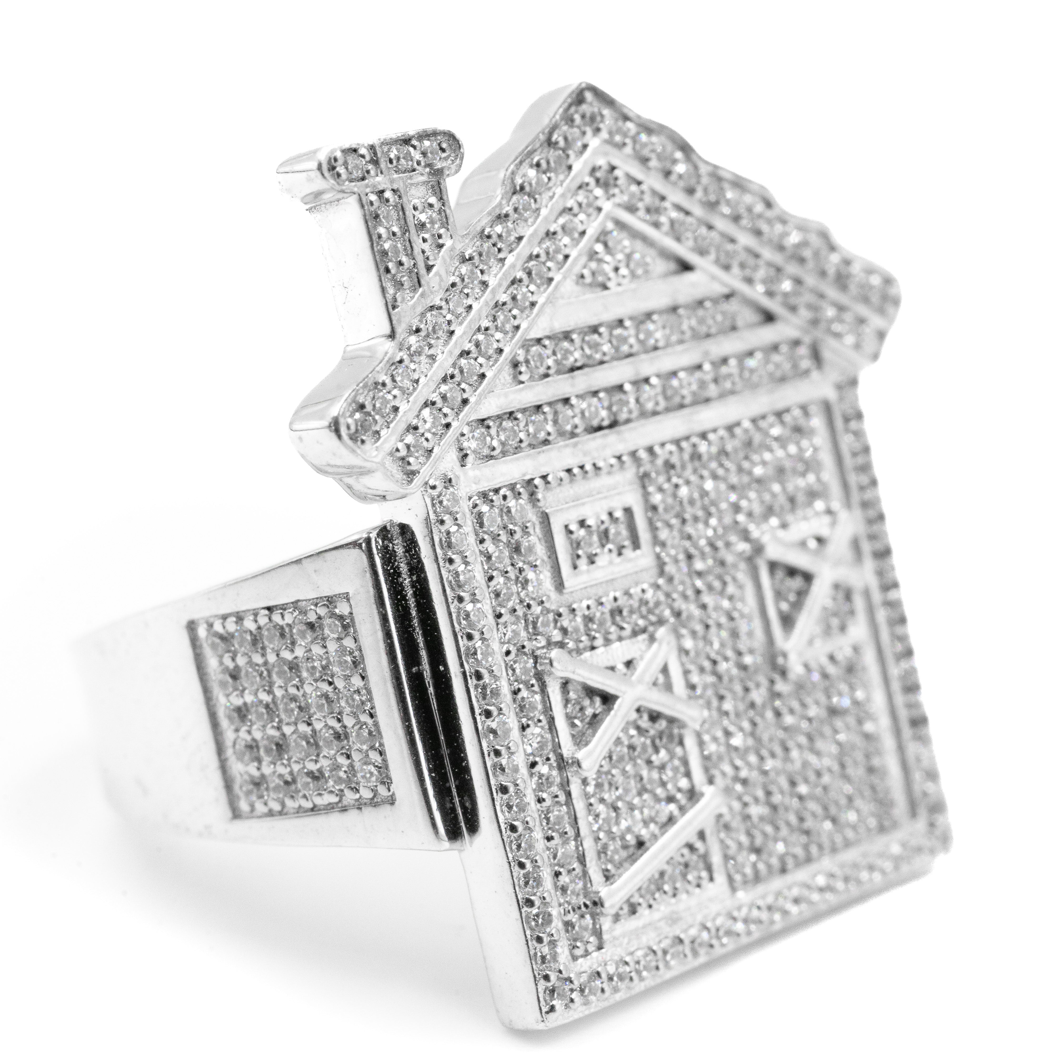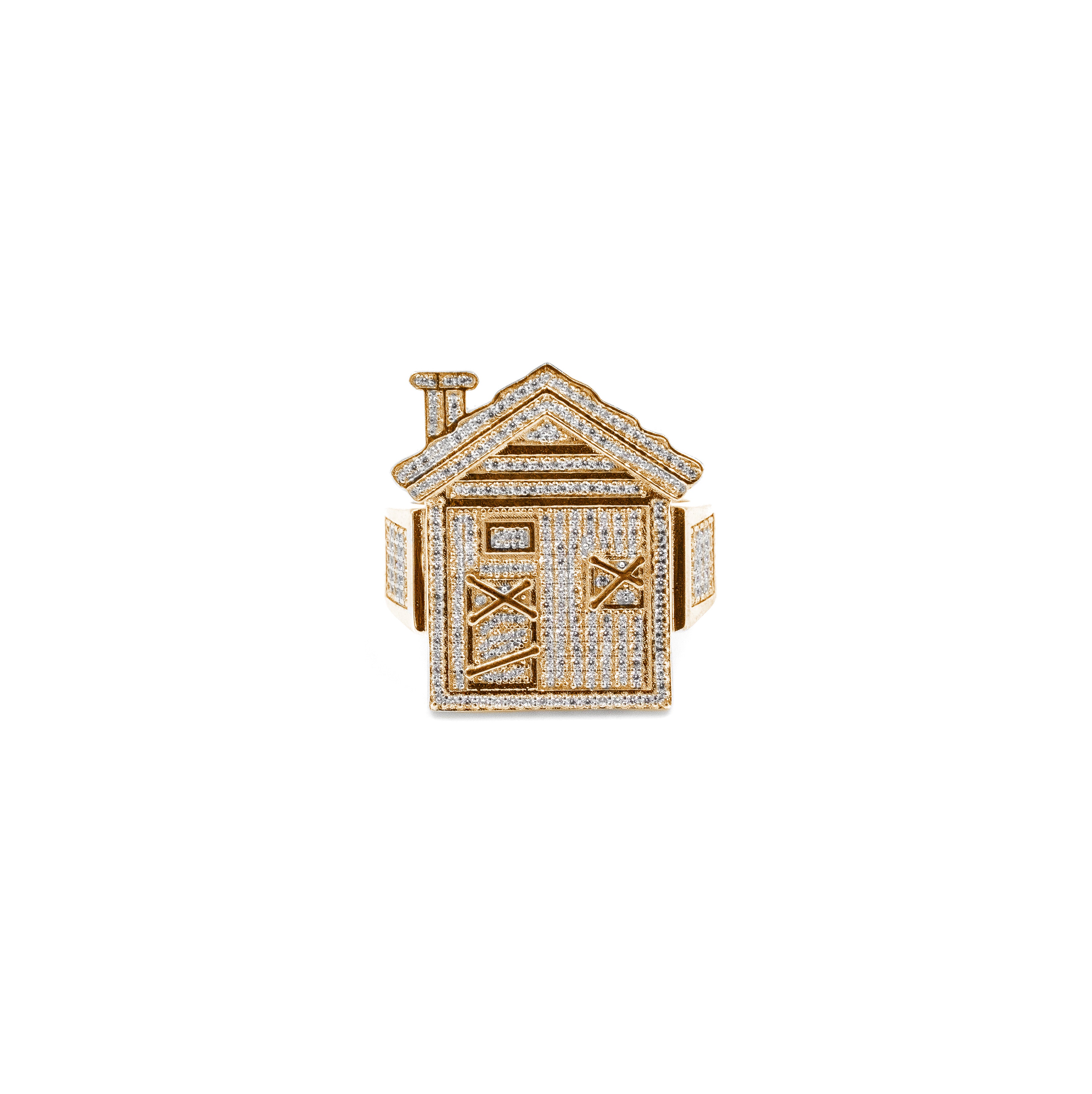 The Derelict House Ring features a bold 3D house design, fully iced across the roof, windows, and walls. Precision-set stones cover the surface, creating insane sparkle from every angle. The band itself is also detailed with micro-set stones for a complete luxury finish.